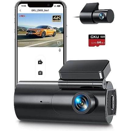 Dash Cam Front and Rear Camera, 4K/2.5K Full Dashcams for Cars with 64GB SD