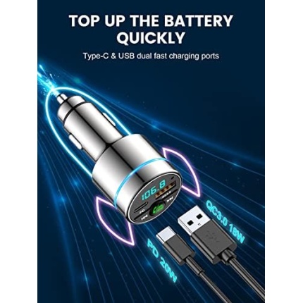 FM Transmitter for Car Bluetooth 5.3, FOCBYE Bluetooth Car Kit [All-Metal]
