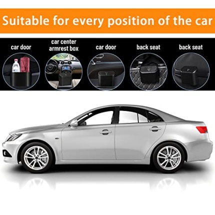 EPAuto Waterproof Car Trash Can with Lid and Storage Pockets, Black