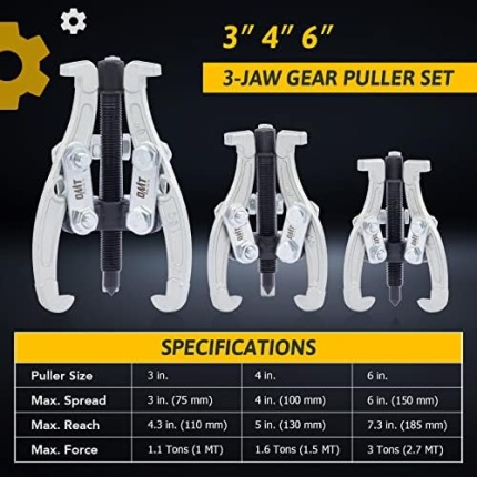 Orion Motor Tech Gear Puller Set, 3″ 4″ 6″ 3 Jaw Puller Kit for Pulley Gear