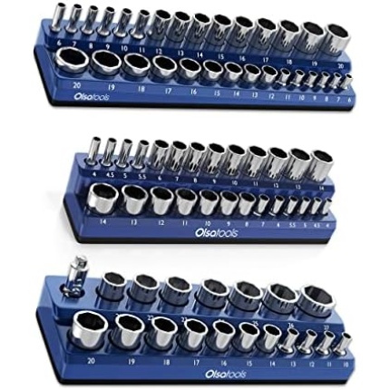 Olsa Tools Magnetic Socket Organizer | 3 Piece Socket Holder Kit | 1/2-inch