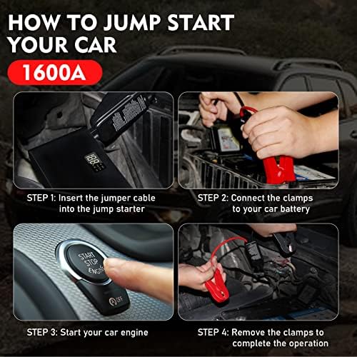 ๐ใWhat You Getใ – Portable Lithium Car Battery ๐ฃ๐ฎ๐ฆ๐ฉ ๐ฌ๐ญ๐๐ซ๐ญ๐๐ซs automotive x1, Portable Car Jumper Cable x1, Adapter x1, USB A to USB C cable x1, User Manual x1, Hard carrying case x1. Power adapter for charging x1, One year of hassle-free warranty and lifetime technical support for BOOKOO power booster ๐ฃ๐ฎ๐ฆ๐ฉ ๐ฌ๐ญ๐๐ซ๐ญ๐๐ซs. Contact us anytime with any questions
