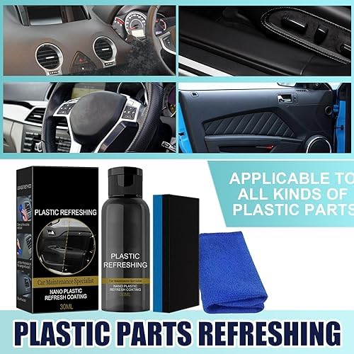 Versatile:Our Plastic Refreshing Coating can be used on a wide range of surfaces, both inside and outside of your car. It is perfect for use on dashboards, seats, steering wheels, armrests, convertibleroof windows, interior or exterior wheels, bumpers, and more. This means you can use itto rejuvenate your car’s entire interior and exterior, giving it a complete new look.
