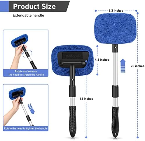 Fast and Easy to Clean Auto Windshield: Clean car window interiors and exteriors without straining. No more hurting your back. With the extra long extension handle and pivoting head getting to those hard-to-reach car window bases is simple