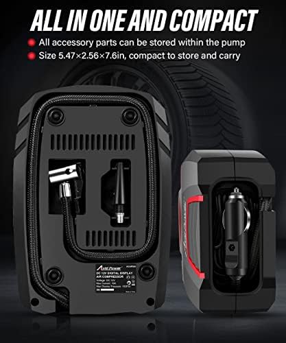 Digital Pressure Gauge – 3 measurement units (PSI, KPA, BAR) can be chosen and shown on the LCD display. This compact tire inflator can also be used as a tire pressure gauge to check your tire pressure before inflating.