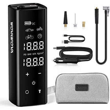 CONVENIENT & EASY STORAGE – Our cordless tire inflator has an air hose compartment for easy use and storage in daily life. Additionally, the compresor de aire para carro has integrated storage for the included 4 additional nozzles and 1high-sensitivity fuse (250V 10A), while the 8.69 ft long power cable is neatly stowed at the side. It’s easy to store, has a large capacity, and can be taken with you wherever you go.