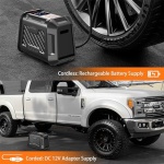 DUAL POWER SUPPLY – This portable tire inflator can be powered by both DC 12V car charger and a built-in rechargeable Lithium battery pack, offering versatility and convenience for use anywhere. No need to worry about running out of battery during your trip.