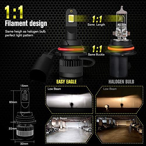 12000LM HIGH LUMENS: These 9004 LED headlight bulbs are made with superior LED chip sets (last over 30,000 hours). Its luminous flux reaches up to 6000LM per bulb (12000LM per pair), which produces similar 6500k xenon white light and brings 3 times more brightness compared with traditional halogen bulbs.