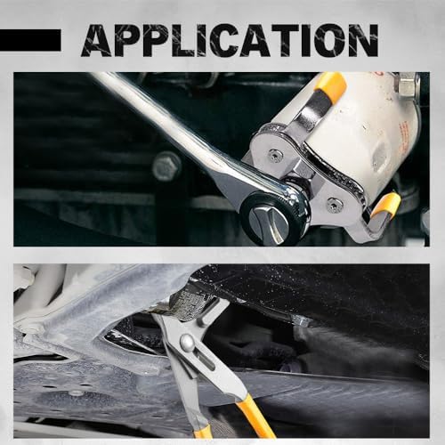 【UNIVERSAL ADJUSTABILITY】 The set features a universal adjustable oil filter wrench, complete with a useful adapter compatible with any 3/8″ or 1/2″ drive ratchet, for easier oil filter removal.