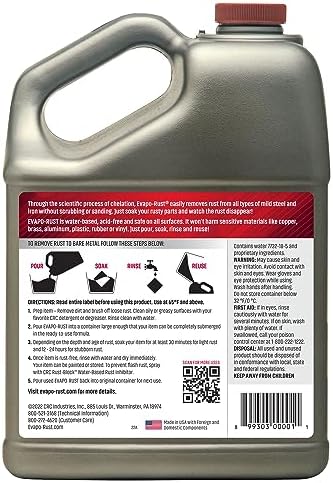 EASY TO USE: To remove rust from your metal parts submerge completely in the water-based rust remover, once rust is removed, rinse with water and protect with corrosion inhibitor.