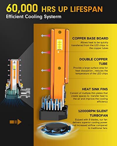 【10+ Years Longer Lifespan】Built with premium aviation-grade aluminum and an advanced copper cooling system, Fahren H11 9005 bulbs deliver unmatched durability. Equipped with a high-performance cooling fan, these bulbs maintain optimal temperature for maximum efficiency and longevity. Enjoy a remarkable 70,000-hour lifespan – that’s over a decade of brilliant, maintenance-free lighting for your vehicle.