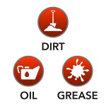 Effective on dirt, oil and grease