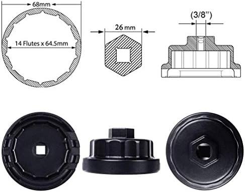 REFERENCE APPLICABLE MODELS – The oil filter cap removal tool fits most of auto models such as Toyota,Lexus,RAV4,Camry,Tundra,Highlander,Sienna,Cruiser,tacoma and More vehicles equipped with 2.5L to 5.7L engines that use Toyota’s cartridge style oil filter system. This wrench does not work on vehicles with traditional canister filters that you unscrew and throw away and does not fit the 1.8L engine oil filter cap.