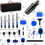 【 CAR INTERIOR CARE KIT 】Dashboard dust brush, microfiber towels and air outlet brushes can be used with car vacuum cleaner to remove dust from the surface of the car. Car window cleaner tool is designed with an extended handle and a rotatable triangular head, which is convenient for cleaning the bottom of the window or some difficult-to-clean areas. 5 different sizes of premium detail brushes make it easy to explore tight spaces, lug nuts and any other hard-to-reach areas.