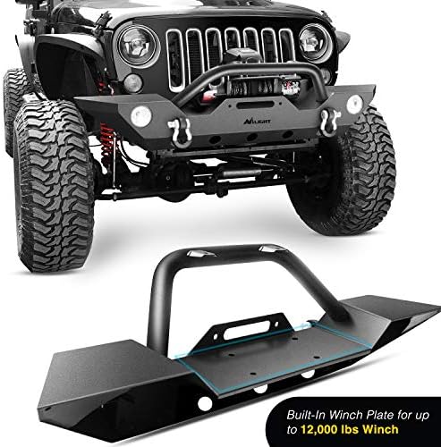 Nilight Black Textured Front Bumper With OE Fog Lights Housing and Winch Plate