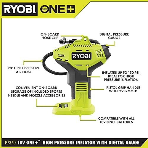 PORTABLE PISTOL PUMPING POWER: Ryobi’s P737 is smaller than most inflators, boasting an ergonomic pistol grip handle for easy use and transport. Keep it in the back of your truck! Strap it to your bicycle!
