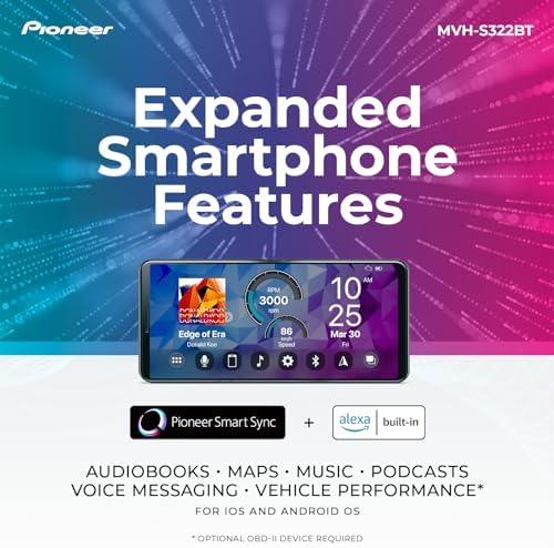 Experience the ultimate in-car audio convenience with the Pioneer MVH-S322BT in-dash digital media receiver. This receiver is designed to enhance your driving experience by providing seamless connectivity, versatile media playback options, and superior sound quality. Pioneer’s Advanced Sound Retriever technology takes your audio experience to the next level by restoring details lost during digital compression. This means you can enjoy your music in a more immersive and dynamic way, with enhanced clarity and depth. Immerse yourself in a non-stop mix of your music library with Pioneer’s MIXTRAX technology. Experience seamless transitions and DJ-style effects, creating an engaging and continuous music playback experience. For added convenience, the receiver is compatible with the Pioneer Smart Sync app. Unlock additional features and control options, including navigation, voice control, and multimedia control, right from your smartphone. With its detachable faceplate, the MVH-S322BT offers added security and peace of mind. Remove the faceplate when leaving your vehicle to deter theft and protect your valuable receiver. Upgrade your car audio experience with the Pioneer MVH-S322BT. Enjoy seamless connectivity, customizable sound, and a range of advanced features, all designed to elevate your driving enjoyment to new heights.