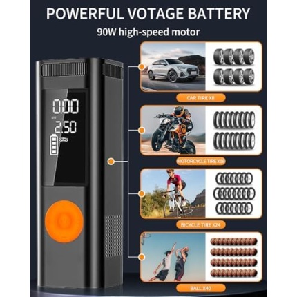Digital Display & LED Lighting: The tire inflator is equipped with a large high-precision and high-brightness display to help you check the tyre pressure and preset the tyre presure values. The air compressor gauge can display the pressure in PSI, BAR & KG/CM². Air pump is equipped with bright and long-lasting LED lights, easy to use even in the dark.