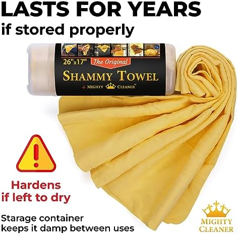 ✅ EXCELLENT ABSORBENCY – The Mighty Cleaner chamois towel for car care quickly absorbs and holds large amounts of water, leaving your car’s finish spotless and streak-free. Our shammy cloth for car drying works like a sponge and a towel in one for cleaning occasional spills.