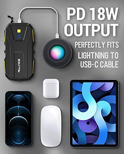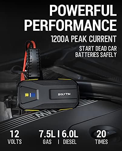 Intelligent Secure Protection: The jumper cables, coming with the SOLVTIN S6 portable jump pack, has a smart protector with 8 protection systems. The red/green indicator ensures the safety during jumping. Heavy-duty jumper clamps are durable enough for repetitive use.