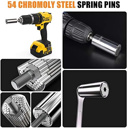 Clever and Useful Tools Ever: Universal socket grip is equipped with power drill adapter, easy connect with most electric drills, electric screwdrivers and manual ratchet set. The brilliant universal socket instantly adjust to grip most metric, wing nuts, broken nuts, stripped nuts, eye bolts, square nuts, hexes and most irregular shape. This magic socket is must have all in one tool for both the professional and the average person. Great addition to your toolbox, cool gift for men and family